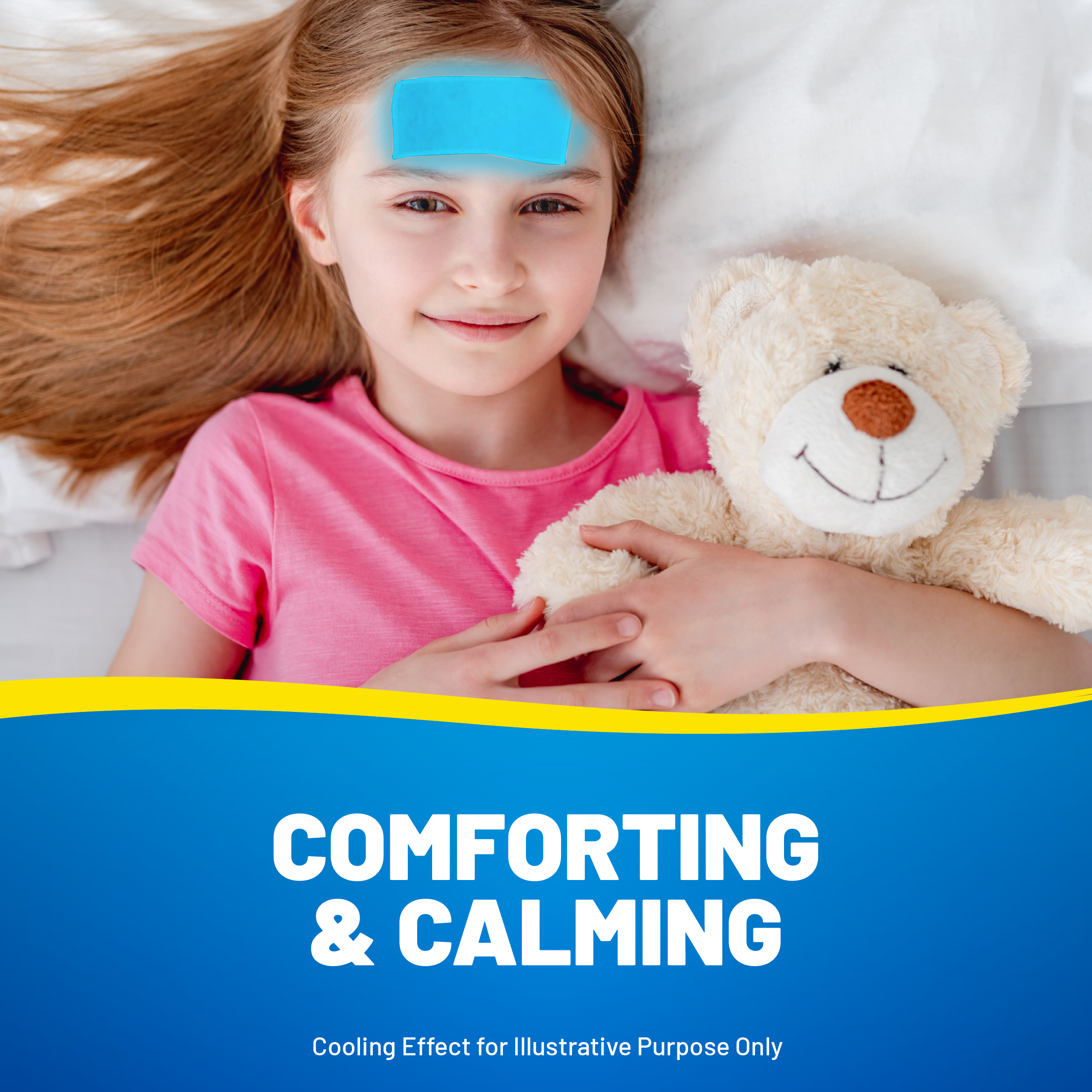 - Targeted cooling relief to alleviate a child's forehead when they have a fever